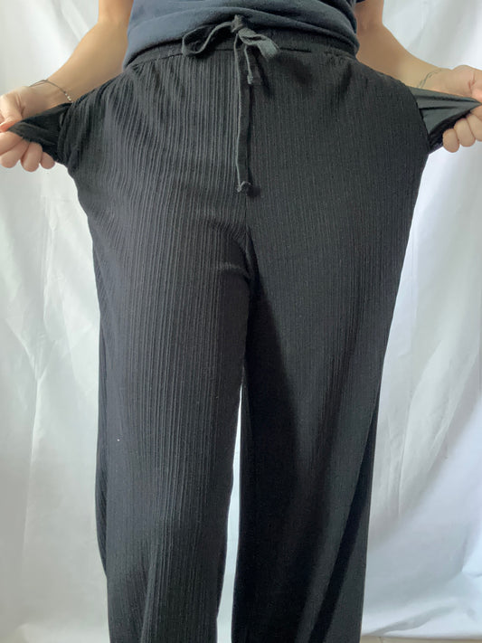 Pantalones anchos de canalé de talle alto