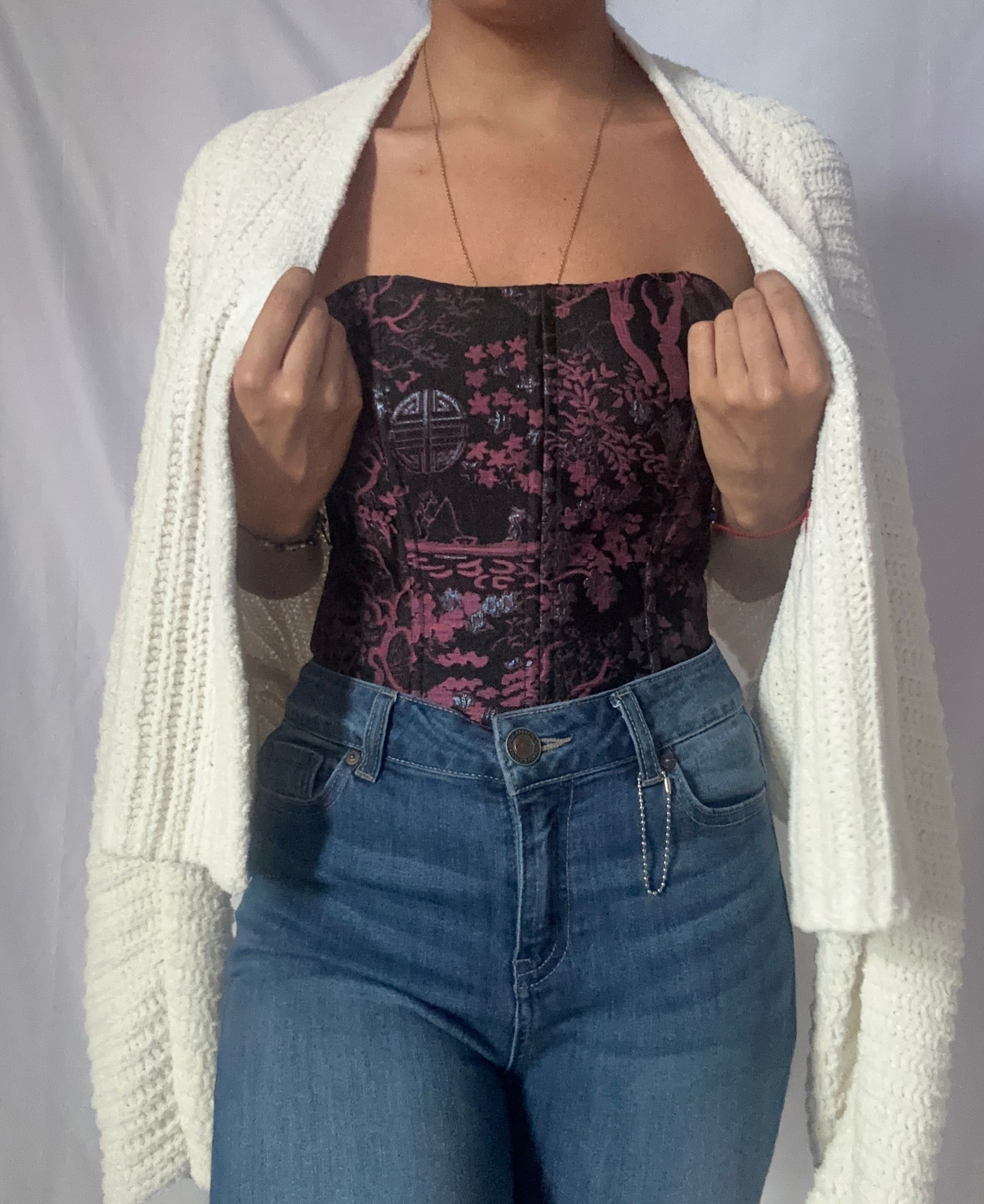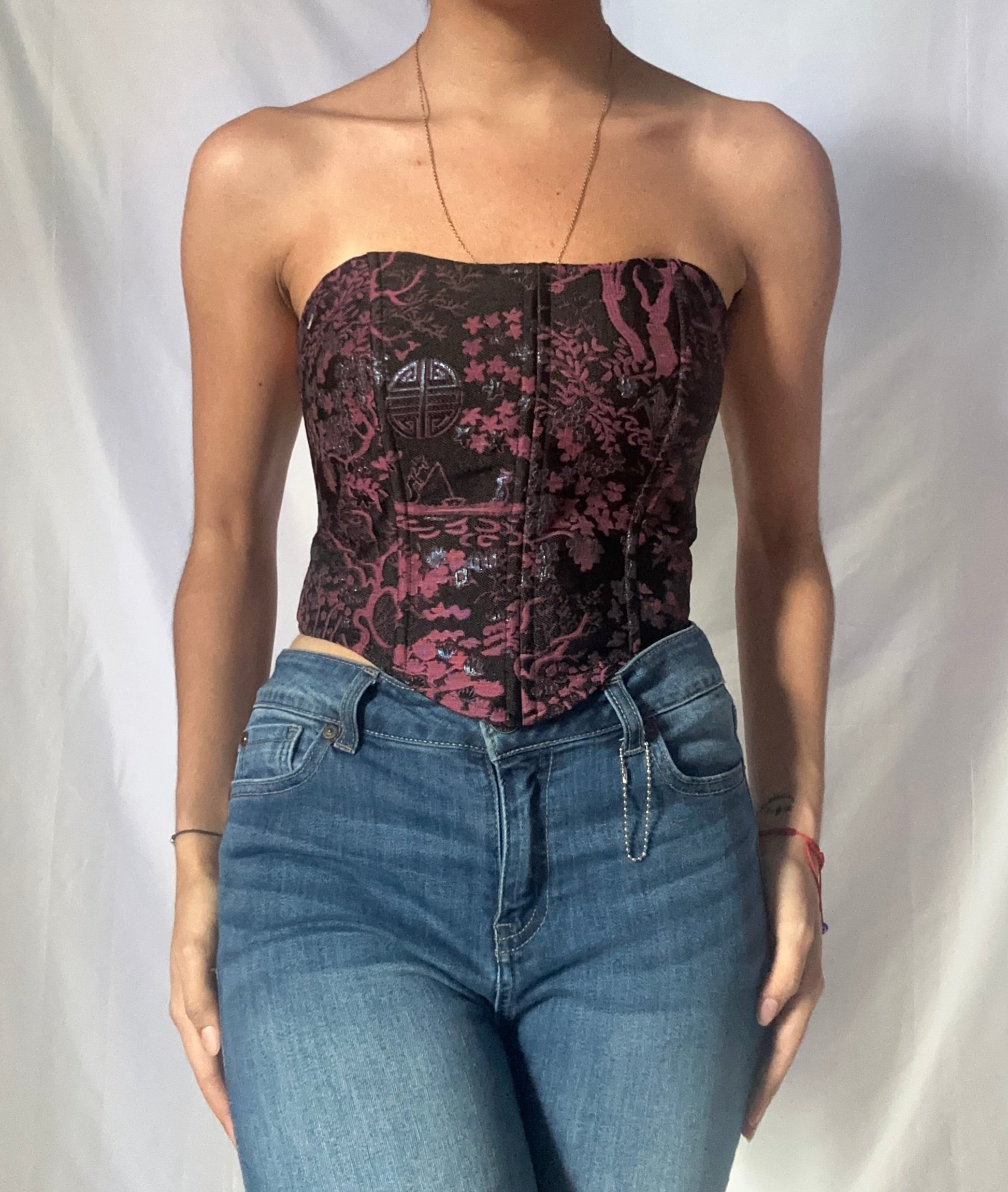 Indulge in luxurious floral dreams with our Lace Embrace Corset. The intricate corset design cinches your waist for a flattering silhouette, while the delicate floral print adds a touch of elegance. Perfect for a sophisticated and exclusive look.