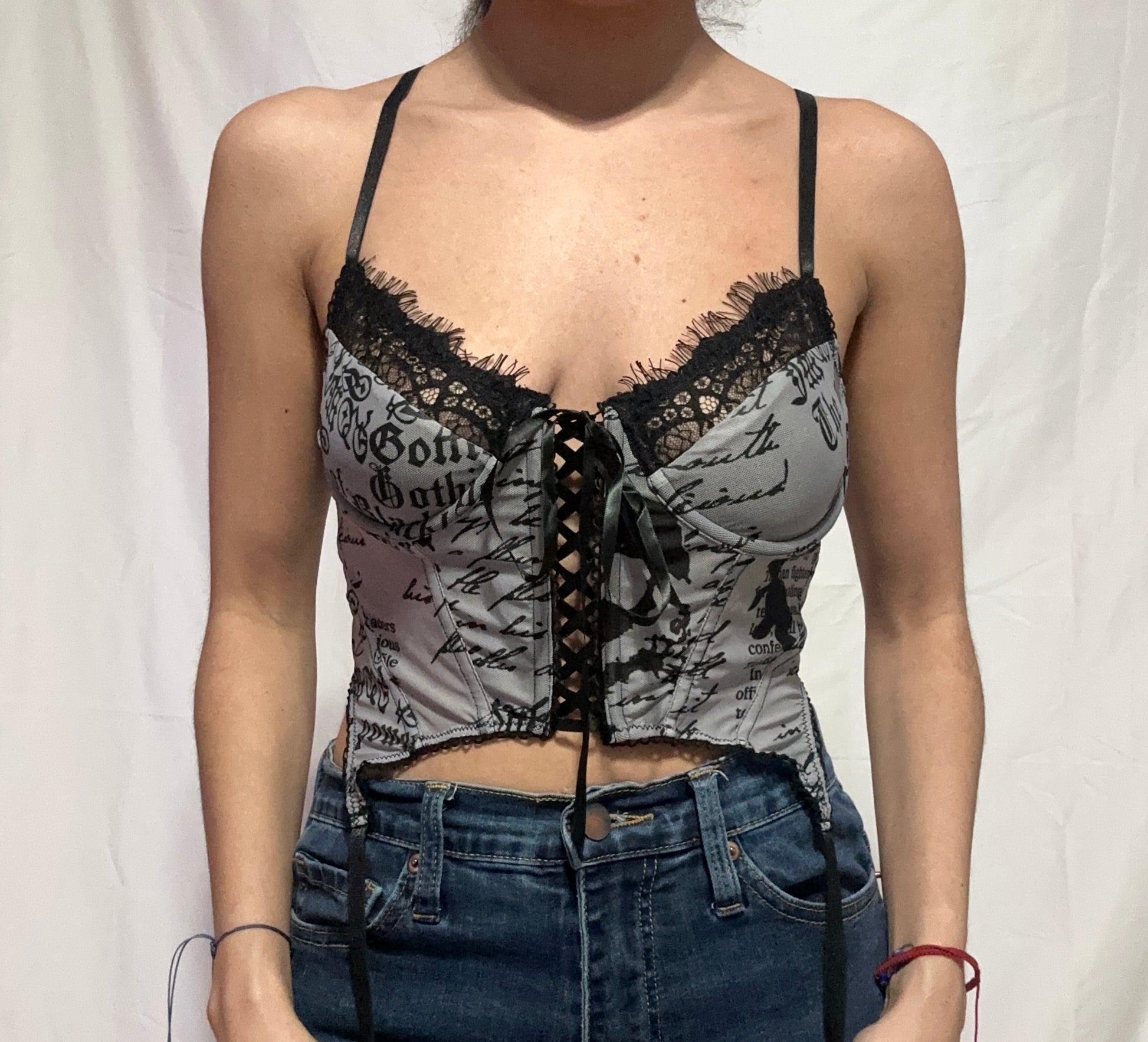 Unleash your inner risk-taker with our Mesh Mirage Cami Top! The bold lace design adds a touch of daring to your wardrobe, while the corset style adds a flattering silhouette. Take on any challenge and make a statement with this must-have top.